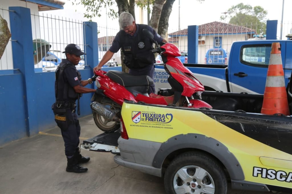 Nesta segunda-feira, dia 23 de julho, a Guarda Municipal de Teixeira de Freitas encaminhou mais uma motocicleta roubada para a Delegacia de Polícia Civil de Teixeira de Freitas. O veículo foi identificado por guardas do Departamento de Trânsito, órgão vinculado à Secretaria Municipal de Segurança e Cidadania, logo após um acidente.