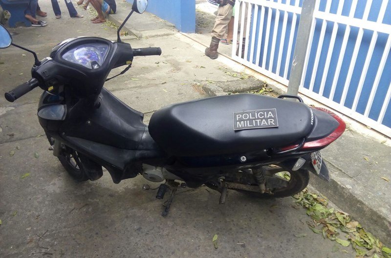 Quando os militares chegavam na delegacia para a apresentação de Gean, outra guarnição que estaria dando apoio na ocorrência localizou a motocicleta Honda/Biz de cor preta placa NZJ 6800, que teria sido usada no assalto.