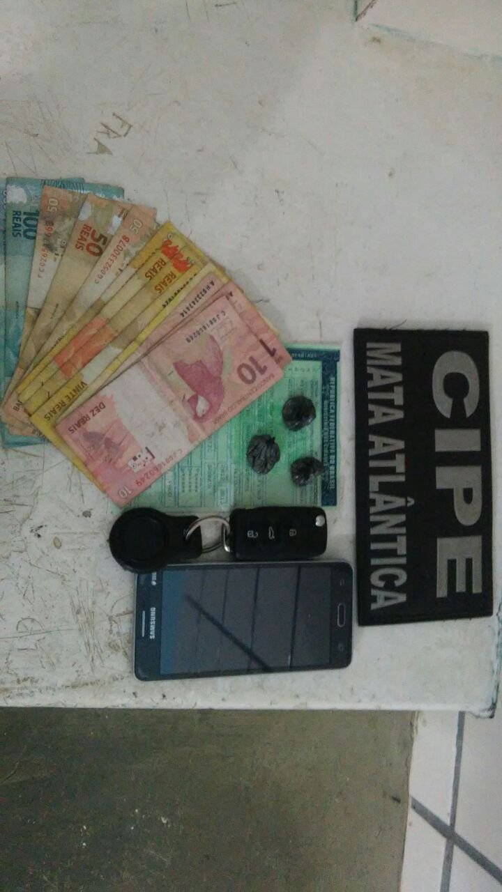 Policiais militares da Caema, ao realizarem uma abordagem ao suspeito que estava a bordo de um veículo VW/Gol, de cor branca, placa policial OLF-1969 e encontraram sob o banco do referido veículo, 03 papelotes de cocaína. Indagado sobre a droga, o suspeito alegou que seria para consumo pois o mesmo é viciado.