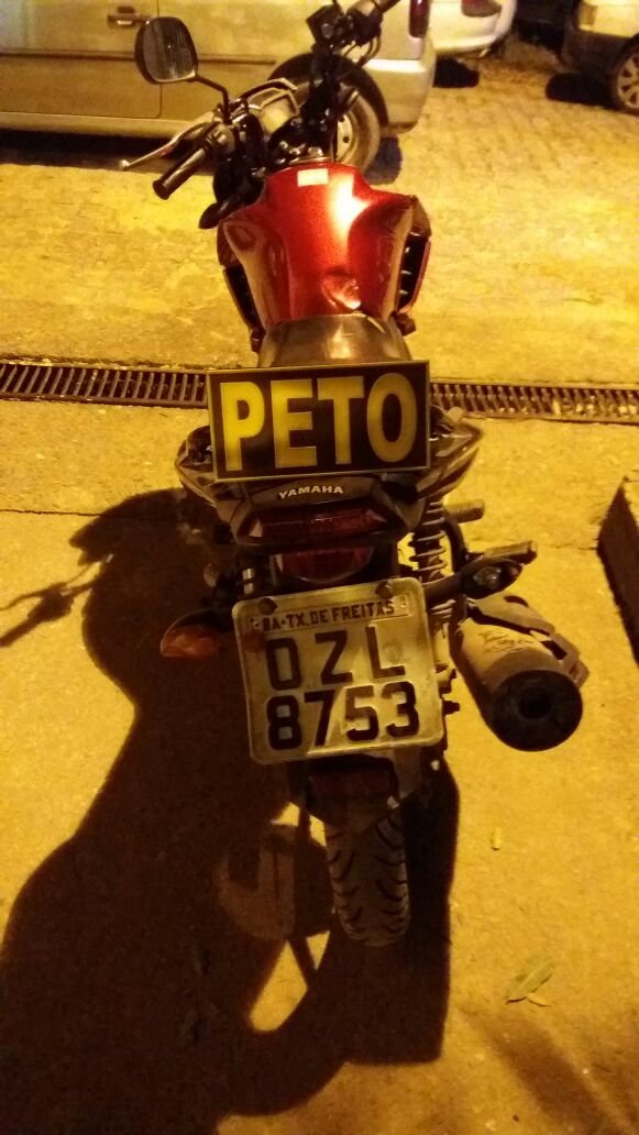 Policiais militares do PETO, realizavam rondas pelo bairro Ouro Verde, quando avistaram um indivíduo pilotando uma moto vermelha, placa policial OZL 8753, sem capacete. Os militares abordaram o suspeito, e ao consultar a placa, foi descoberto que a motocicleta possuía restrição de furto, ocorrido no dia 07 de setembro deste ano.