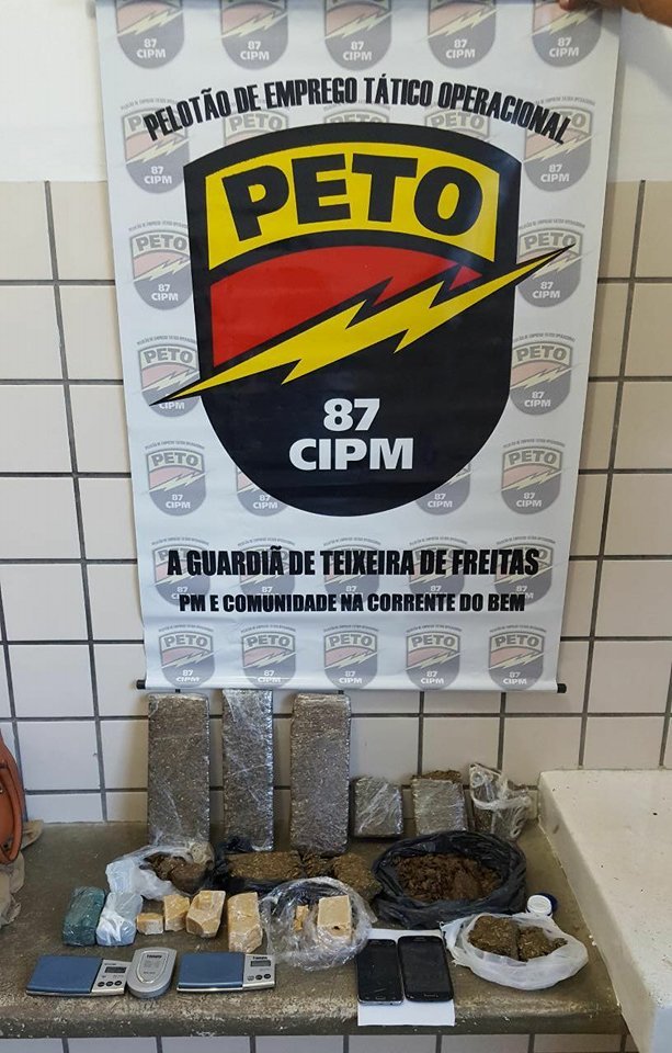 A informação dava conta que Jaquelina, estaria transportando drogas. A suspeita, foi localizada na garupa de um mototaxista, e pretendia embarcar em um ônibus no trevo de Teixeira de Freitas, com destino a Itamaraju. Com a suspeita, os policiais encontraram 02 barras de maconha e 01 porção de crack.