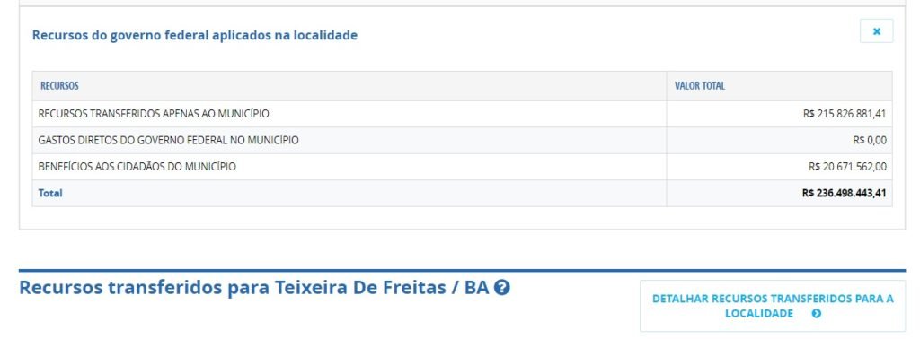 O dados, foram extraídos do Portal da Transparência do Governo federal, através do link: http://www.portaldatransparencia.gov.br/localidades/2931350-teixeira-de-freitas?ano=2018