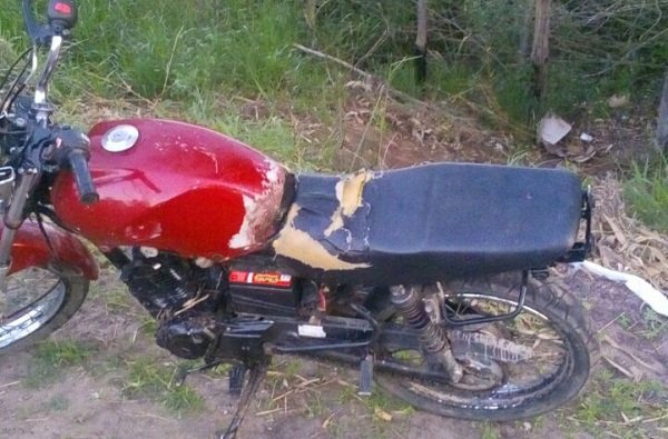 Populares denunciaram através do número 190 da polícia militar o fato de uma motocicleta sem placa estar abandonada nas imediações do aterro sanitário em Teixeira de Freitas.