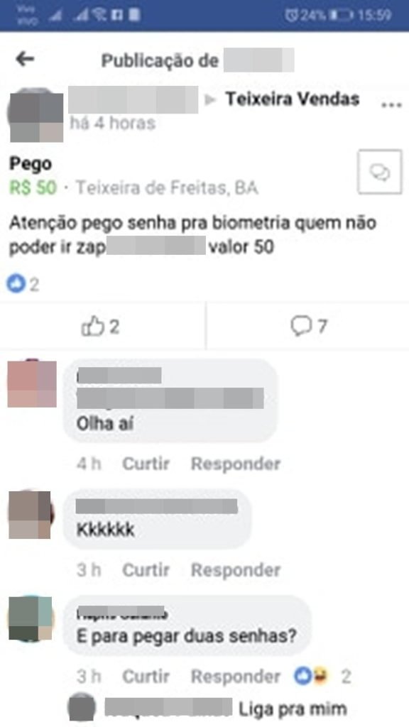Quando perguntado como conseguia a senha para a realização da biometria, se havia algum tipo de facilitação, o homem foi taxativo.