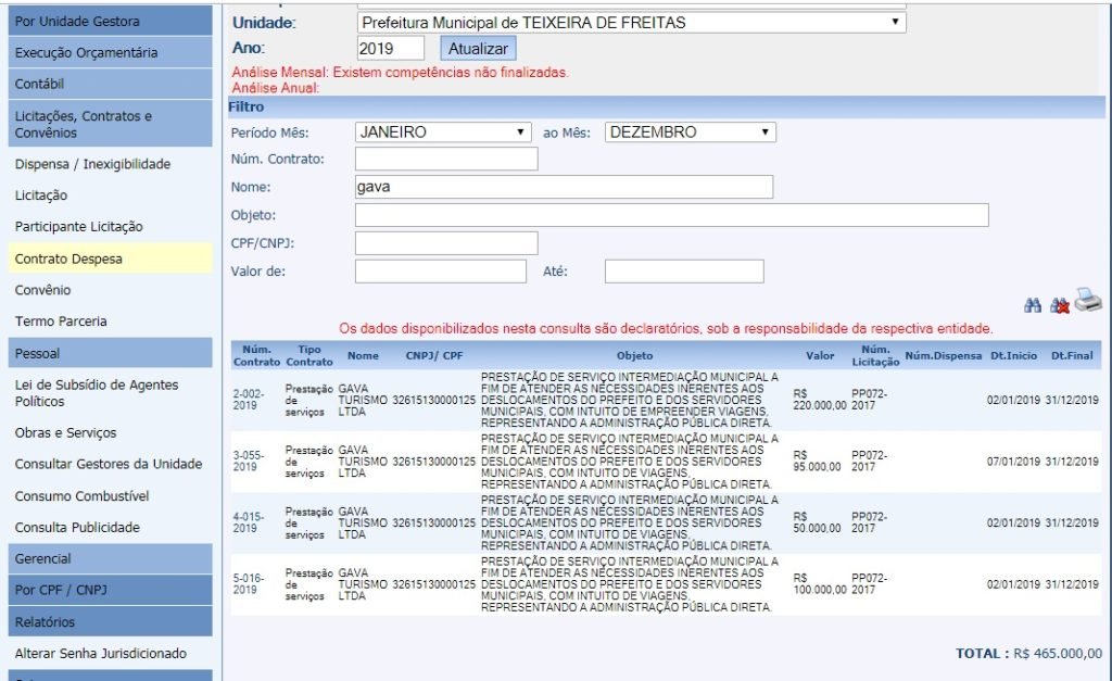 O prefeito de Teixeira de Freitas, Temóteo Alves de Brito, homologou a licitação PP072-2017 no valor de R$ 465.000,00 (quatrocentos e sessenta e cinco mil reais) para PRESTAÇÃO DE SERVIÇO INTERMEDIAÇÃO MUNICIPAL A FIM DE ATENDER AS NECESSIDADES INERENTES AOS DESLOCAMENTOS DO PREFEITO E DOS SERVIDORES MUNICIPAIS, COM INTUITO DE EMPREENDER VIAGENS, REPRESENTANDO A ADMINISTRAÇÃO PÚBLICA DIRETA.