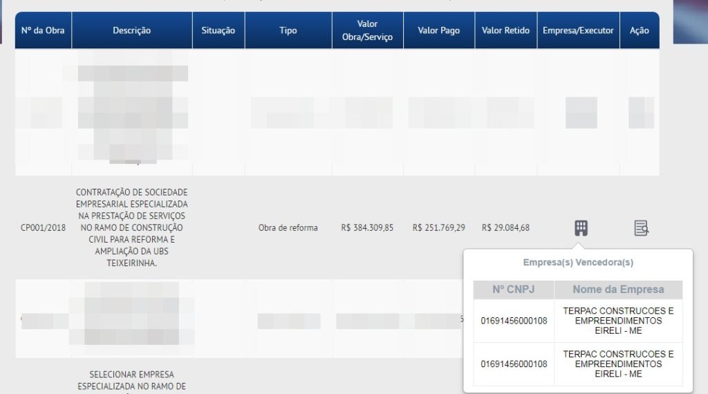 A reforma, foi realizada pela empresa Terpac Construções e Empreendimentos, CNPJ 01.691.456/0001-08, com sede em Vespasiano/MG.