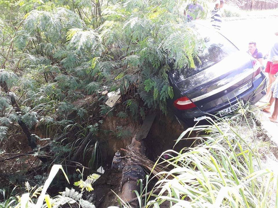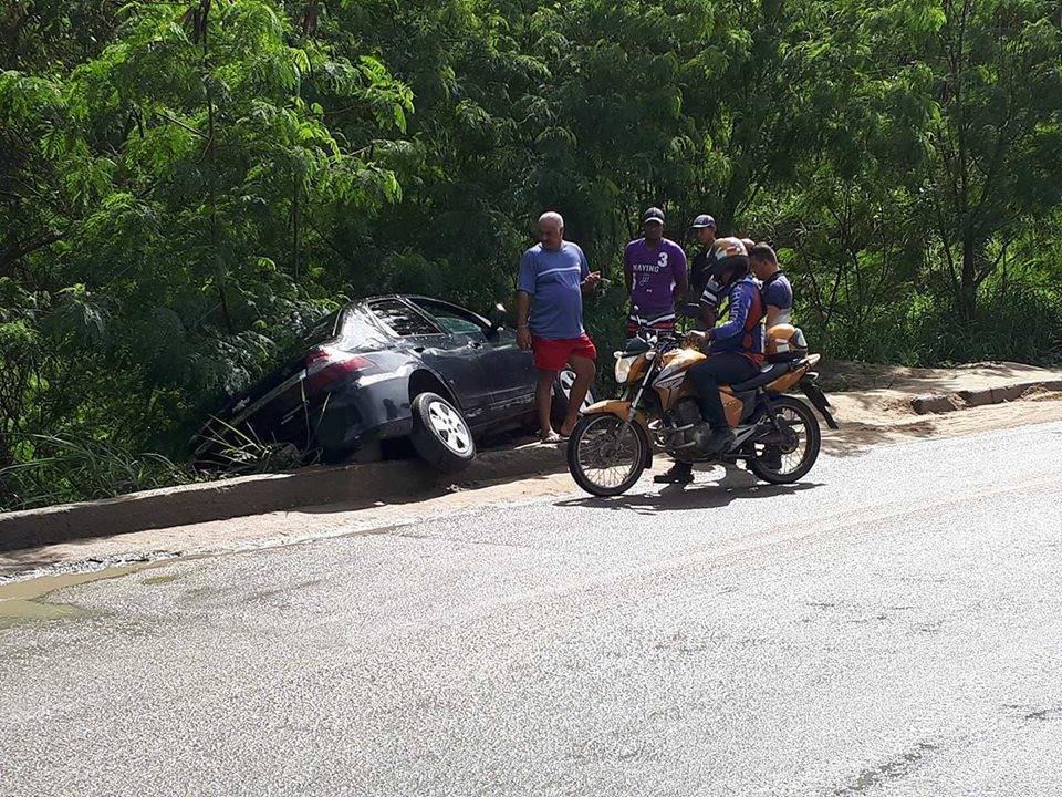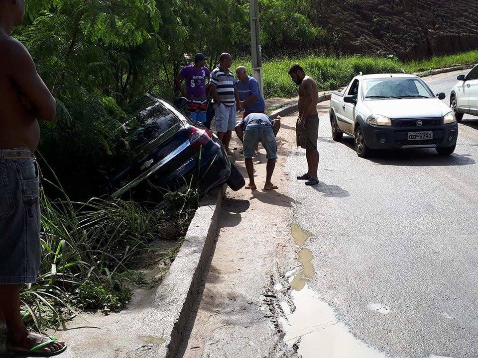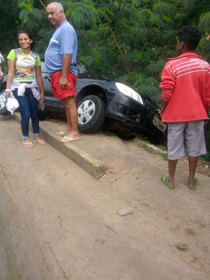 O veículo, estava com uma passageira, e ninguém ficou ferido. Populares que passavam pelo local ajudaram e conseguiram evitar que o carro caísse de uma altura de cerca de 03 metros.
