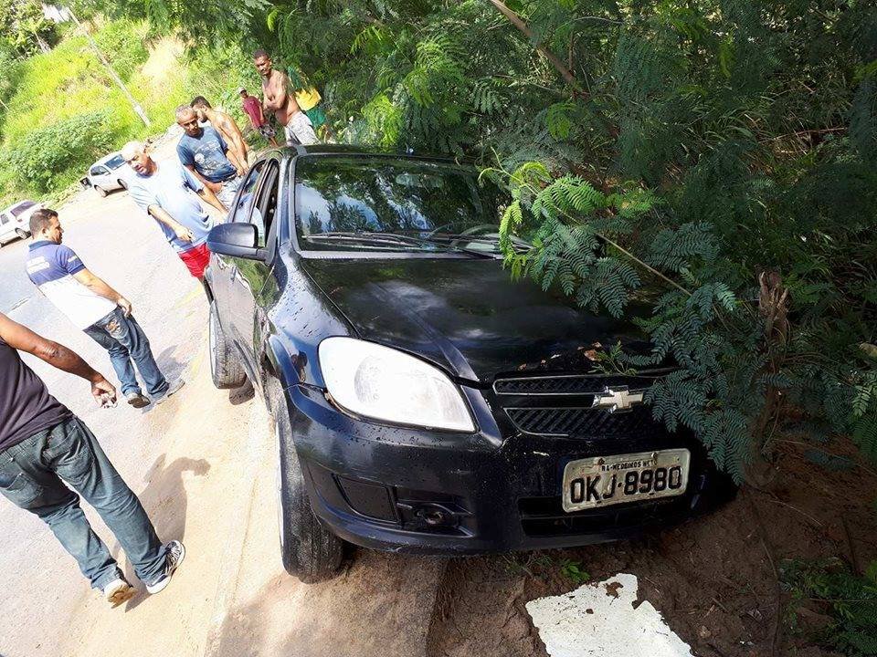 Segundo informações, o veículo Chevrolet\ Prisma, cor preta, placa policial OKJ 8980, licenciada em Medeiros Neto, acabou perdendo a direção e caindo em direção a uma ribanceira na ladeira do bairro.