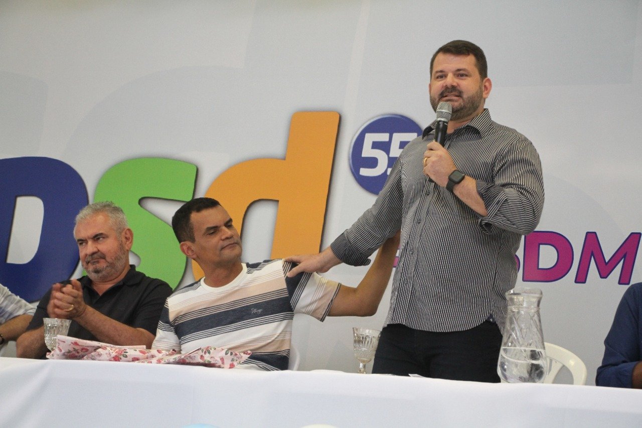 Ao som da orquestra 09 de maio com o maestro Orley, a mesa de honra foi formada pelas lideranças políticas da nossa região: prefeito de Ibirapuã, Calixto; prefeito de Prado, Gilvan Produções; prefeito Toninho e o vice Nilsao de Lajedão; do presidente municipal do PSD de Nova Viçosa, Rogério Benjamim; do anfitrião,o administrador Eujacio Dantas; do pré-candidato a deputado estadual Angelo Coronel Filho e do senador Angelo Coronel. Para o candidato a deputado estadual Angelo Coronel Filho, Teixeira de Freitas tem a partir de agora uma oportunidade de participar de um novo momento do PSD municipal que vai retomar o sentimento de esperança de vivenciarmos dias melhores. Angelo Coronel Filho ainda fez questão de enaltecer todo o grupo do novo PSD de Teixeira de Freitas. Um dos destaques do evento foi o pronunciamento do senador Angelo Coronel. Ao som de “Noites Traiçoeiras” , o senador enalteceu a presença divina no evento que buscou falar de união de forças para transformar Teixeira de Freitas e comentou que seu gabinete em Brasília está a disposição do grupo de Eujacio Dantas. Por sua vez, o administrador Eujacio Dantas agradeceu a presença de cada pessoa, homenageou as mães e reafirmou seu compromisso de ajudar a eleger Angelo Coronel Filho para deputado estadual e conclamou a população para abraçar ainda mais o projeto “Transforma Teixeira”.