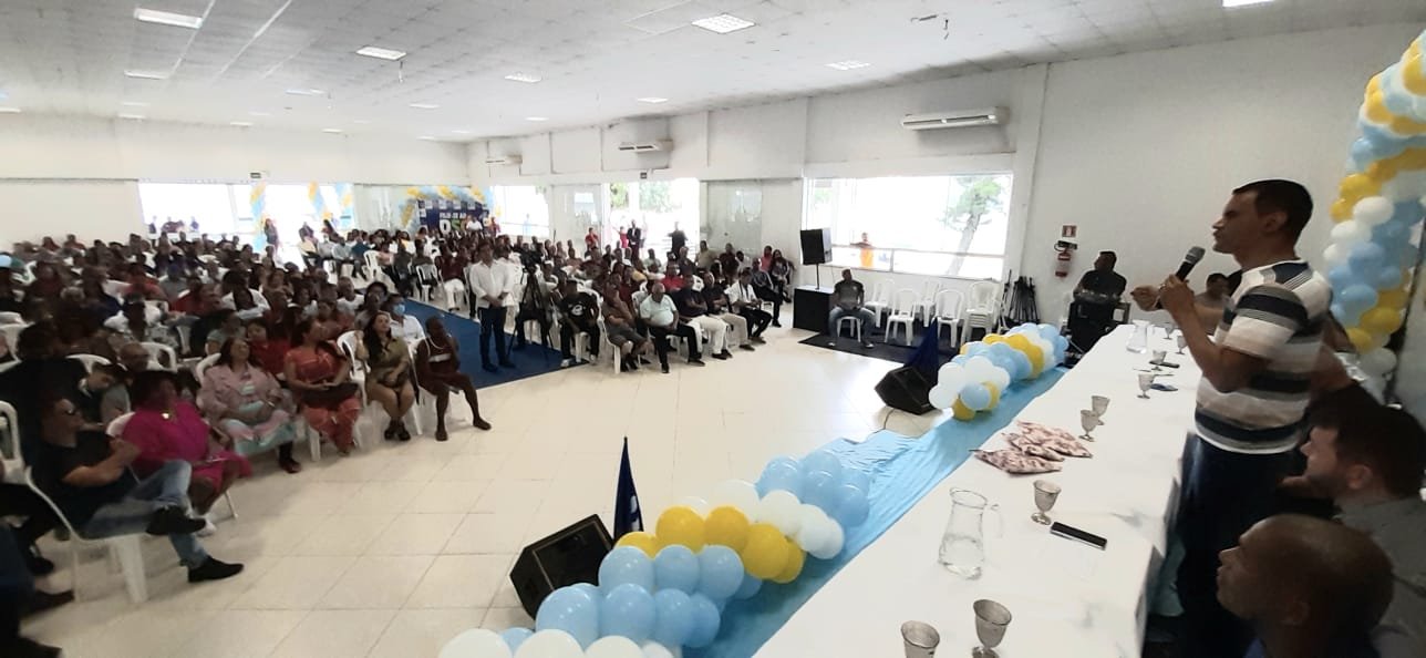 Senador Angelo Coronel e o pré-candidato Angelo Coronel Filho se surpreendem com recepção do grupo de Eujacio Dantas no evento “Transforma Teixeira”. O clube Kaikan ficou lotado na manhã desta segunda feira, 09 de maio, dia do aniversário de Emancipação Política de Teixeira de Freitas. Amigos, parceiros , empresários e lideranças políticas regionais prestigiaram o evento “Transforma Teixeira”.