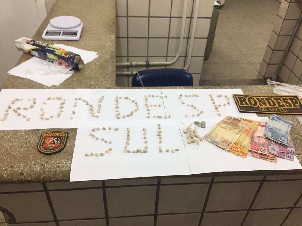 A guarnição realizava rondas no referido bairro, quando avistaram o indivíduo em atitude suspeita. Após a abordagem, foi encontrado em poder do mesmo, 10 pedras de crack.