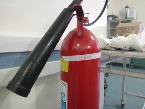 A equipe do Corpo de Bombeiros encontrou no local um extintor de incêndio, que estava vazio. O extintor, foi marcado com fita adesiva, com a palavra “Vazio”, após a constatação do fato.