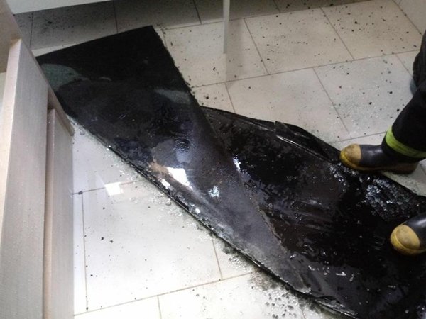 A equipe de Corpo de Bombeiros, quebrou uma das janelas e quebrou algumas telhas do corredor anexo ao hospital, para garantir a ventilação e dispersão da fumaça tóxica do ambiente.