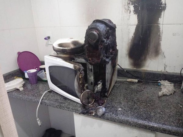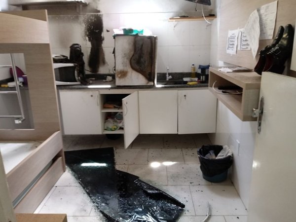 No incêndio, 01 aparelho de microondas, 01 cafeteira, 01 ar condicionado, 01 televisão e 01 frigobar, foram danificados pelo fogo. A causa do incêndio, foi relatada como desconhecida pelos militares.
