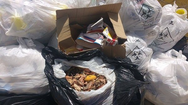 Ainda no mês de maio, outro flagrante, mostrou o lixo hospitalar sendo acondicionados em recipientes comuns e misturados a lixo doméstico, exposto na porta do Ambulatório Central do município.