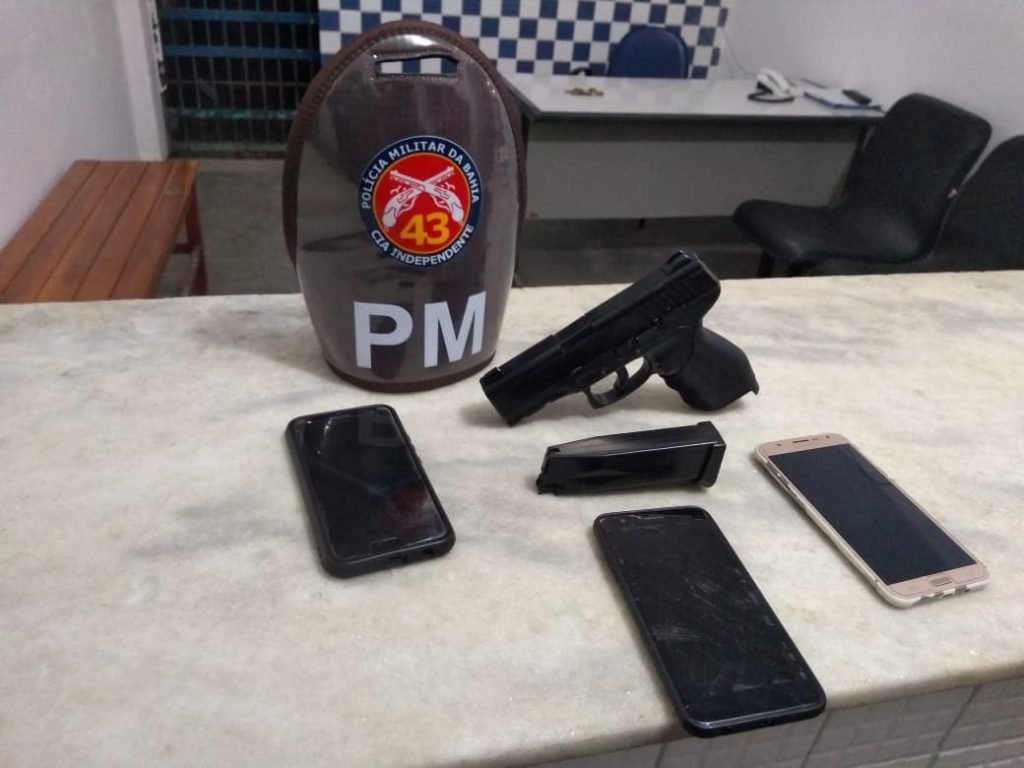 Durante madrugada deste domingo, 06 de outubro, uma Guarnição da 43ª CIPM avistou três indivíduos em atitudes suspeita, nas proximidades da Praça Castelo Branco. Ao realizar a abordagem encontrou uma pistola airsoft.