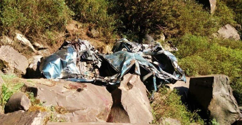 Segundo militares do Corpo de Bombeiros, o veículo ficou comprimido, ficando apenas cerca de 50cm de altura entre o teto e assoalho do carro. A estrada que passa pela área não fica próxima ao penhasco.